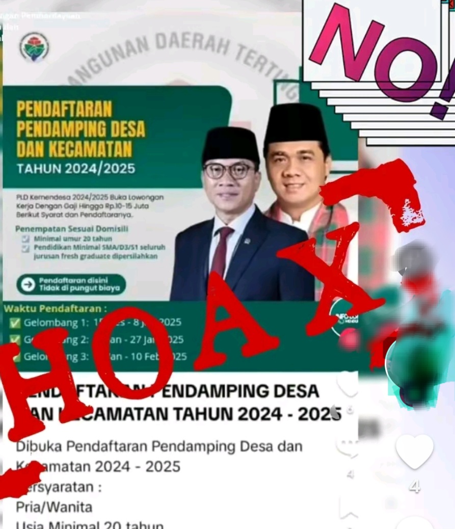 informasi mengenai lowongan Pendamping Lokal Desa (PLD) dengan gaji puluhan juta rupiah adalah hoaks: