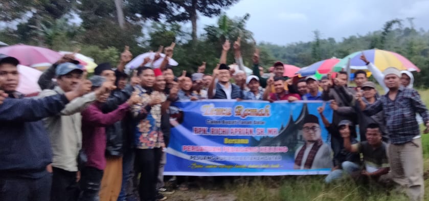 Salimpaung, Tanah Datar,- NEWS-ANTARA,— Kampanye perdana calon Bupati Tanah Datar Richi Aprian, SH , MH – Donny Karsont S.H secara resmi diadakan di nagari Tabek Patah Kecamatan Salimpaung, Senin (30/9) dengan menampung aspirasi dari Persatuan Pedagang Keliling pejunag rupiah di salah satu kedai kawa daun di Tabek patah.