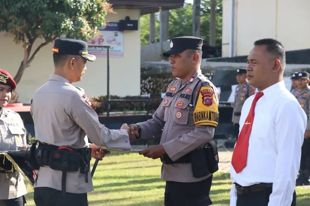 Kegiatan apel berlangsung dengan khidmat dan dilanjutkan dengan penyerahan piagam penghargaan secara simbolis kepada personel dan perwakilan Polsek berprestasi.
